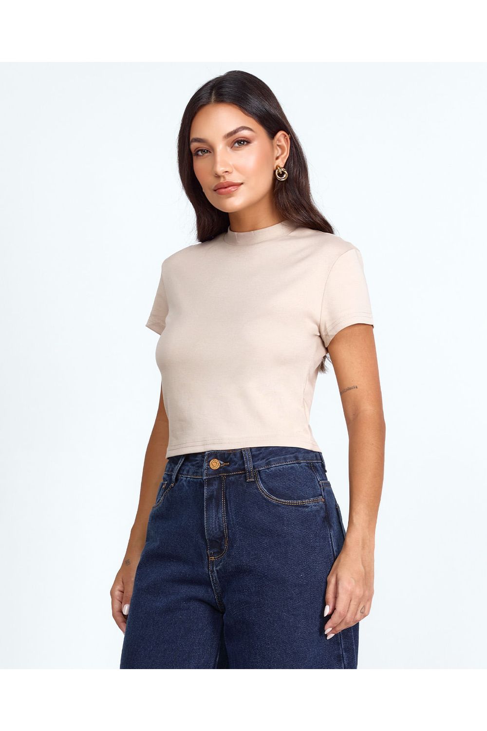 Invista em Uma Baby Look Básica Atemporal Que Vai Elevar o Seu Guarda-Roupa com a Sofisticação e Qualidade do Algodão Peruano.
