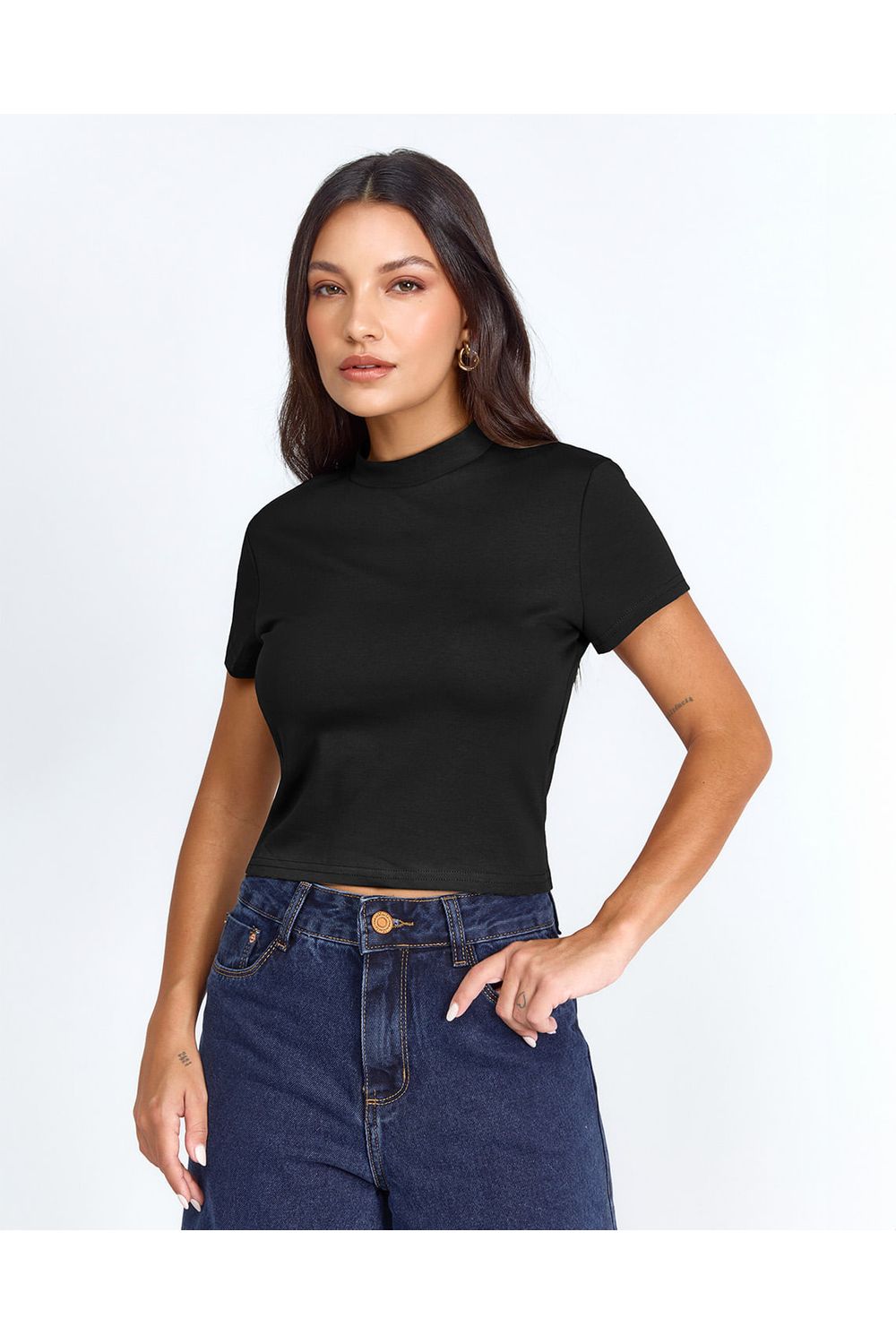 Invista em Uma Baby Look Básica Atemporal Que Vai Elevar o Seu Guarda-Roupa com a Sofisticação e Qualidade do Algodão Peruano.