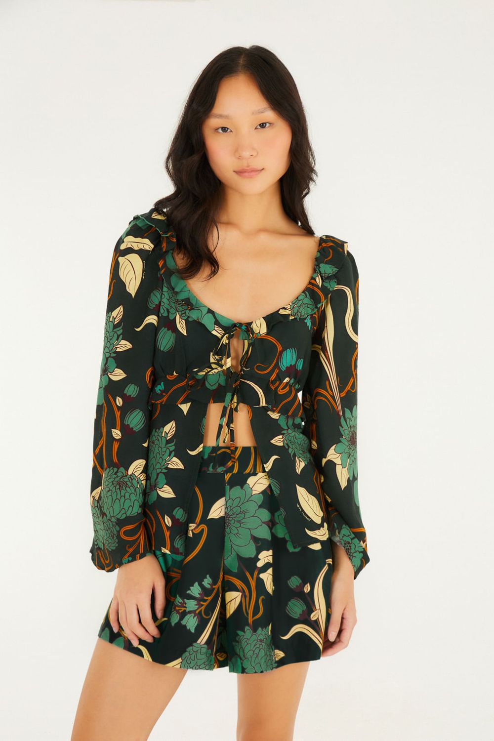 bata estampada beatrice floral. possui decote em v nas costas e amarração nos ombros, destacando a modelagem leve e fluida. as mangas compridas completam o charme da peça, ideal para um look casual e estiloso. perfeita para um passeio ao ar livre ou um encontro especial. FARM RIO original - alto inverno 25.-