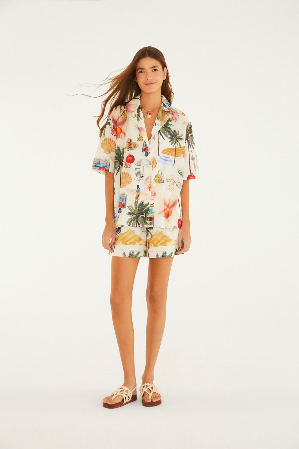 bermuda colagem carioca da FARM traz o charme autêntico da marca em um design casual e refreshante. com corte solto e cintura ajustada, essa peça celebra a criatividade em tons vibrantes. ideal para passeios ao ar livre ou encontros casuais, ela é sinônimo de conforto e estilo. FARM Rio, coleção Carioca - inverno 26.-