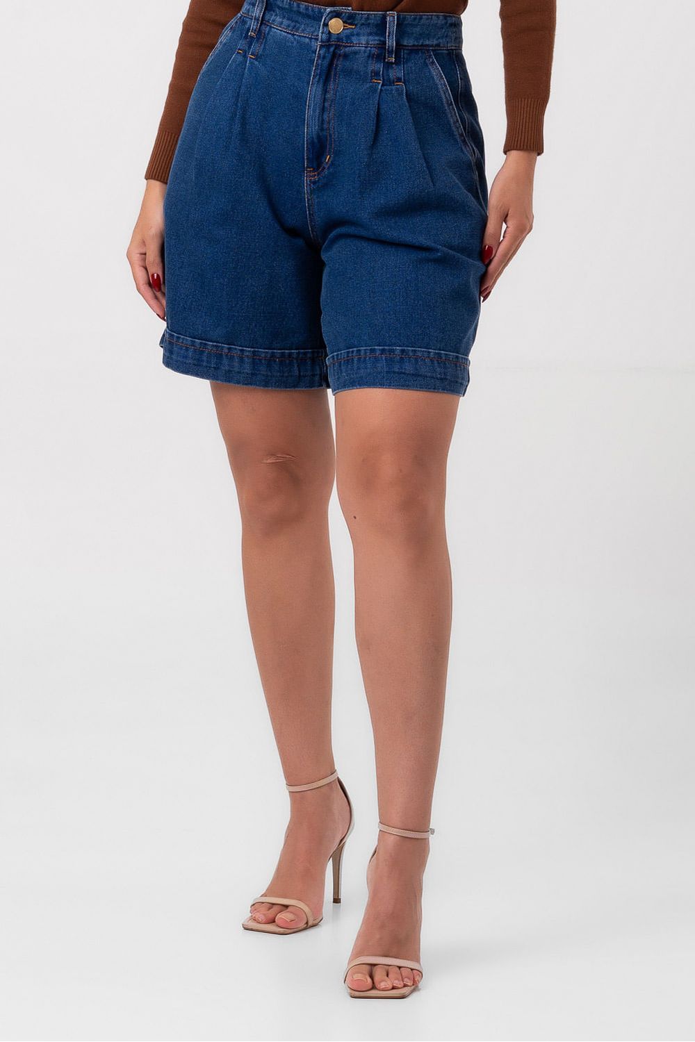 Bermuda jeans com pregas labrava-