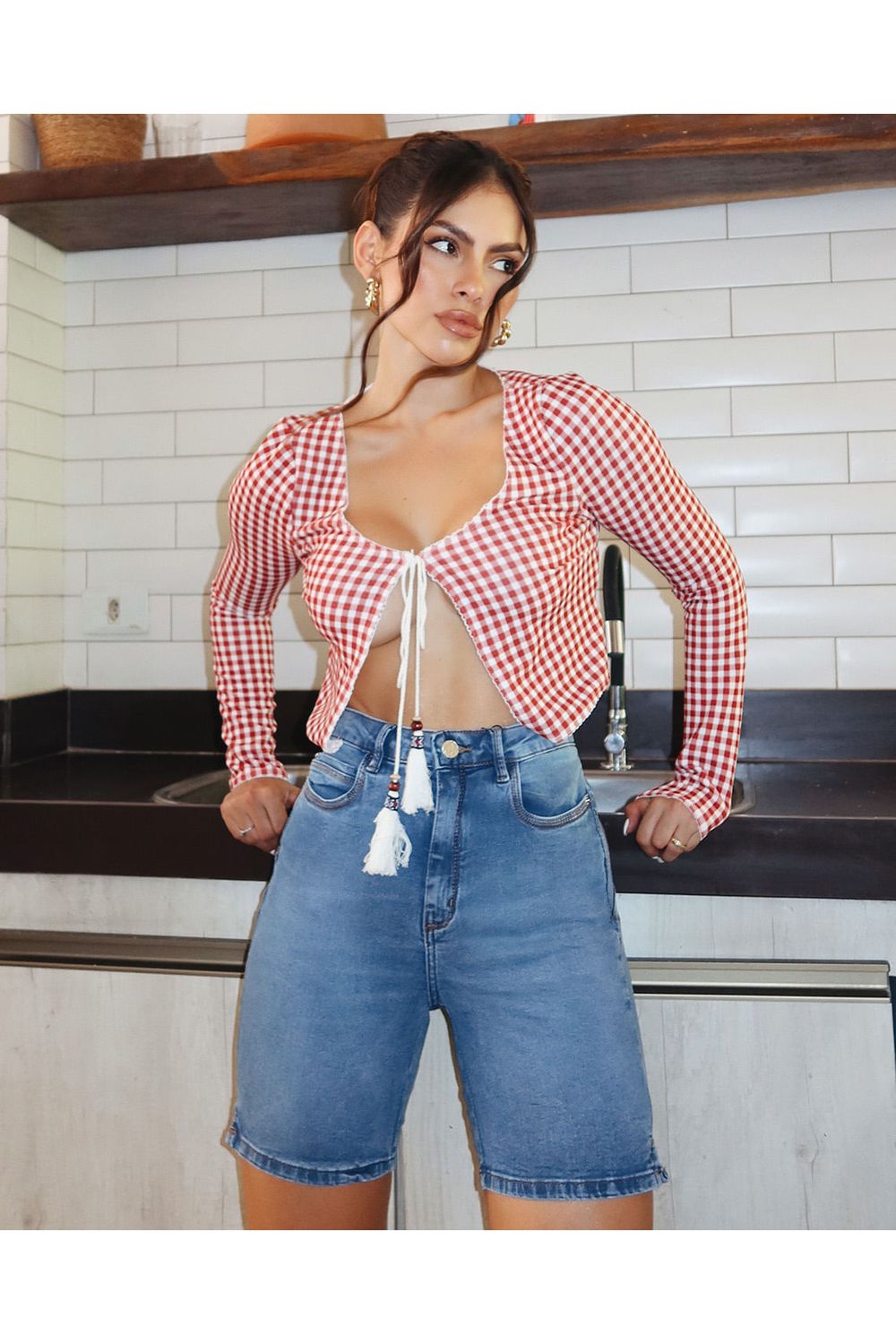 Bermuda Jeans Feminina Meia Coxa 24992 Sky Médio