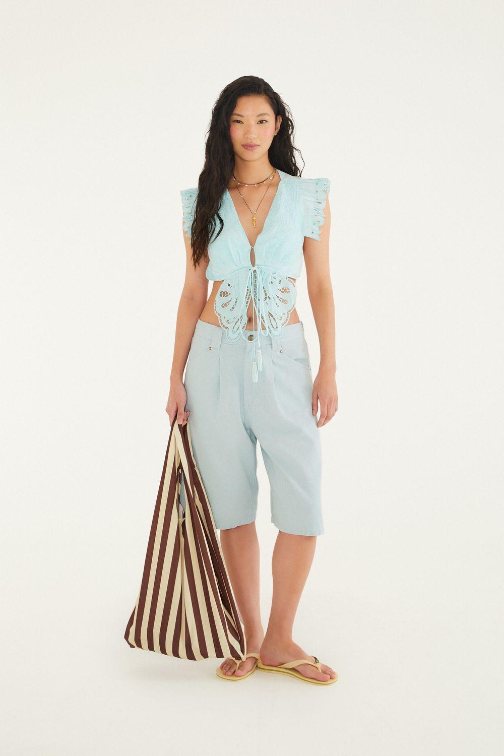 bermuda sarja. é a peça ideal para explorar a estação. confeccionada em sarja confortável, possui corte reto que garante um caimento casual. o cós com passantes é prático e resistente, enquanto os bolsos laterais e traseiros complementam o visual funcional. perfeita para passeios ao ar livre ou encontros informais. FARM RIO original - alto verão 26.-