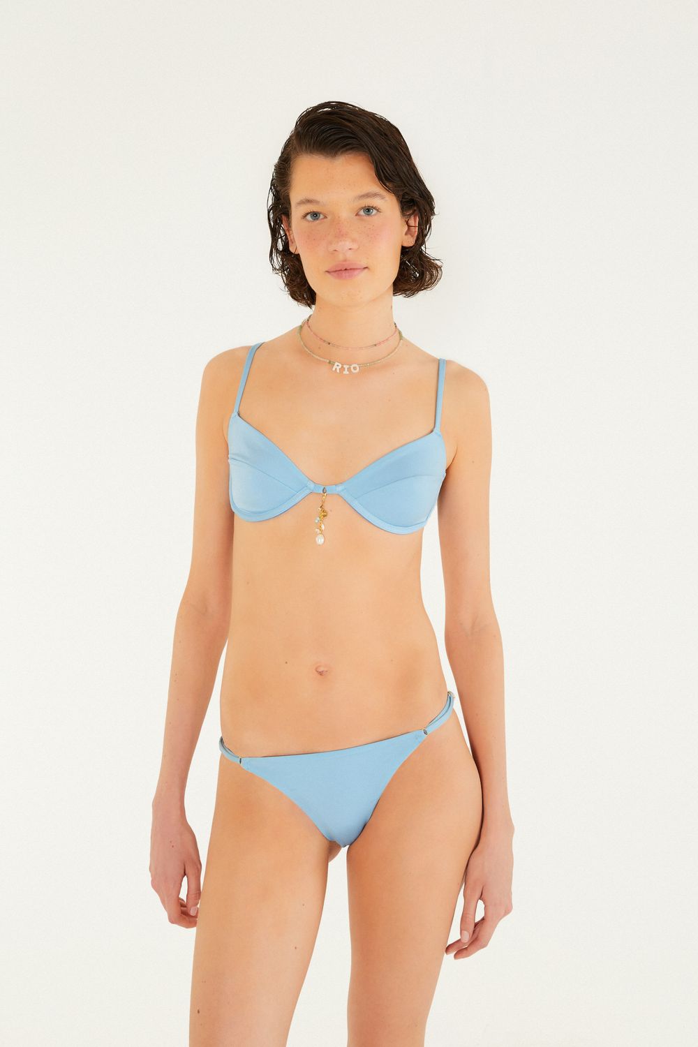biquíni meia taça pingentes. apresenta modelagem meia taça com alças ajustáveis e delicados pingentes centrais. as laterais da calcinha possuem amarração para ajuste ao corpo. perfeito para dias ensolarados à beira-mar ou piscina, trazendo um toque de exclusividade e estilo ao seu verão. FARM RIO original - alto verão 26.-