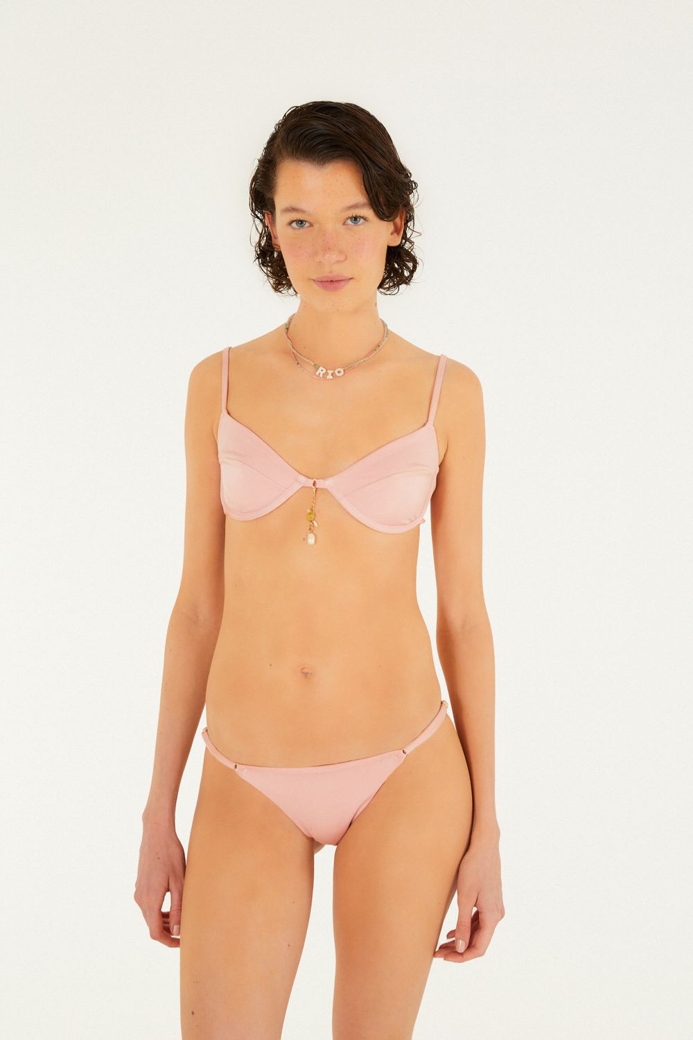 biquíni meia taça pingentes. apresenta modelagem meia taça com alças ajustáveis e delicados pingentes centrais. as laterais da calcinha possuem amarração para ajuste ao corpo. perfeito para dias ensolarados à beira-mar ou piscina, trazendo um toque de exclusividade e estilo ao seu verão. FARM RIO original - alto verão 26.-