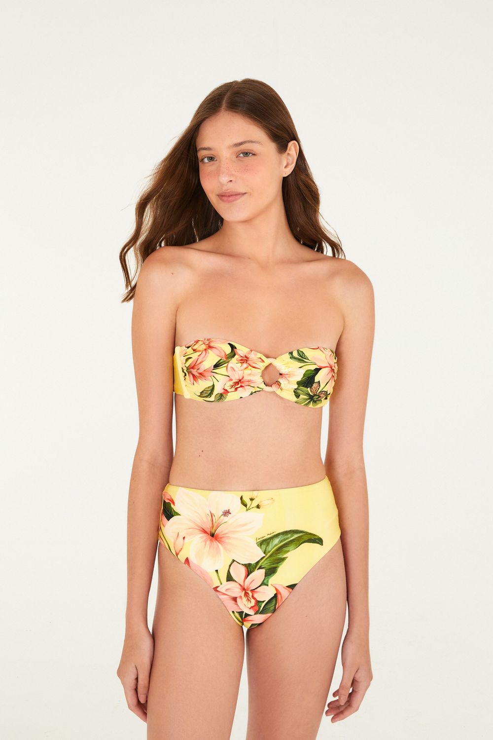 biquini localizado floribel. com design casual e alegre, esse biquíni apresenta top com alças removíveis e detalhe de amarração nas costas, trazendo versatilidade. a calcinha de cintura alta oferece conforto e estilo. perfeito para um dia relaxante na praia ou na piscina. FARM Rio, coleção Carioca - inverno 26.-