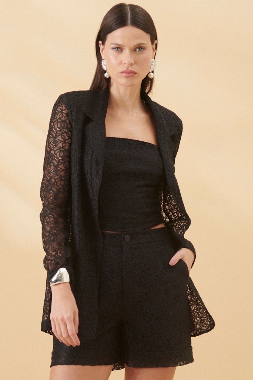 Blazer Renda Pirâmide Smk Preto