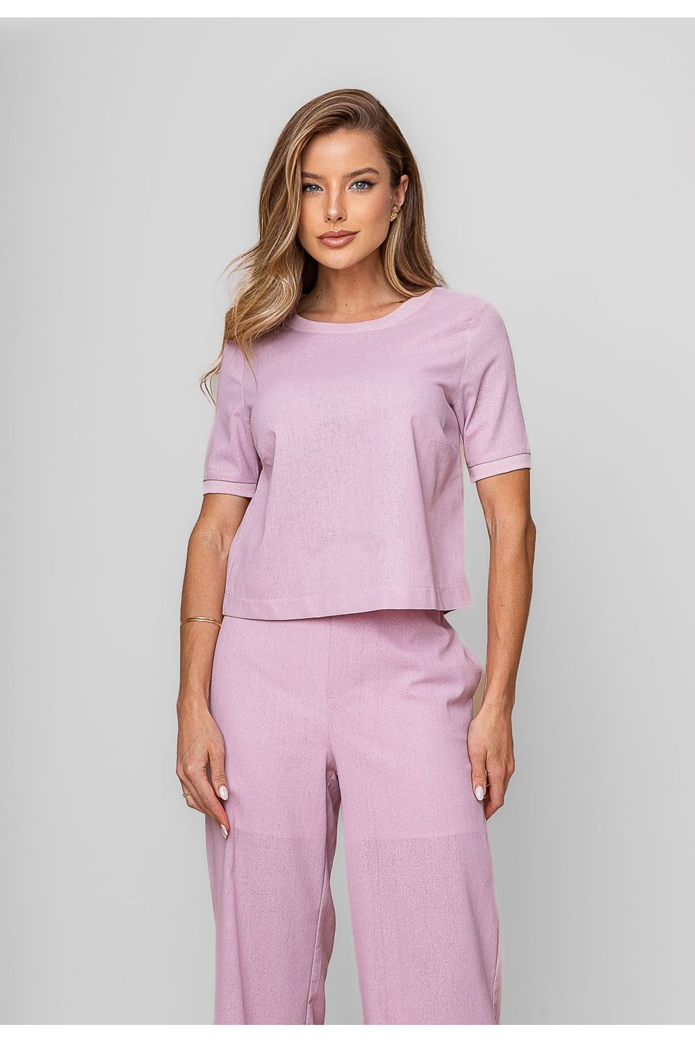 Blusa Alfaiataria Gola Ribana Manga Curta Rosa Salvatore