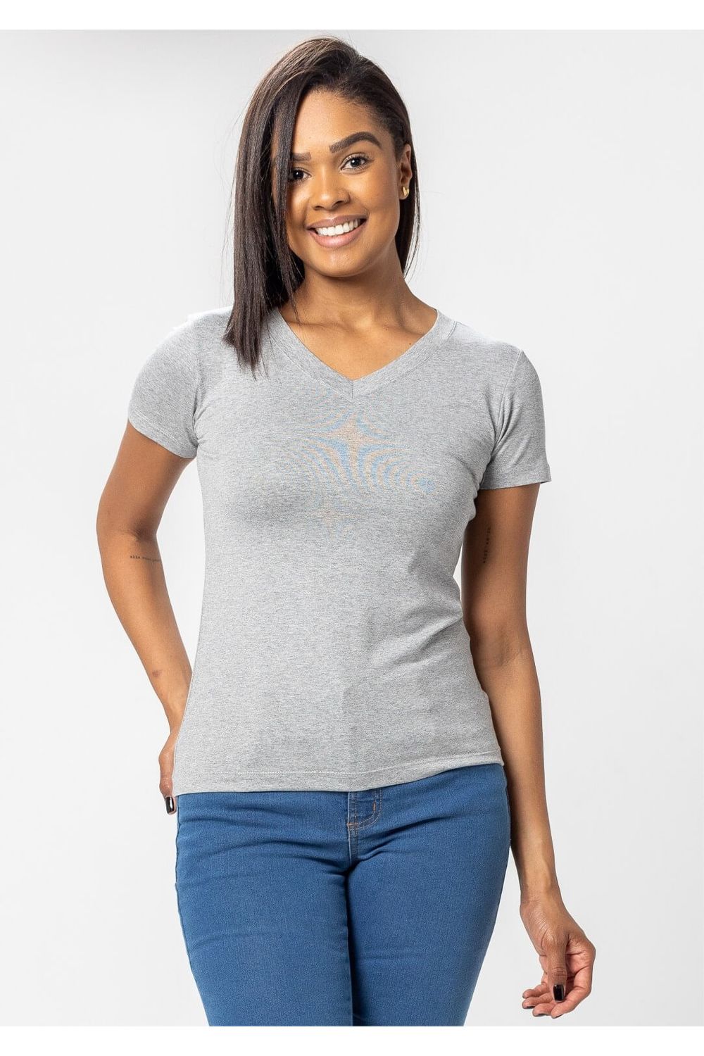 Blusa feminina construída em Viscolycra, na cor Cinza Mescla.