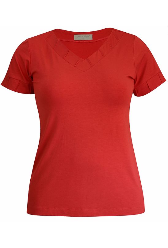 Malha da blusa básica - Coral. Modelagem da blusa, soltinha ao corpo.