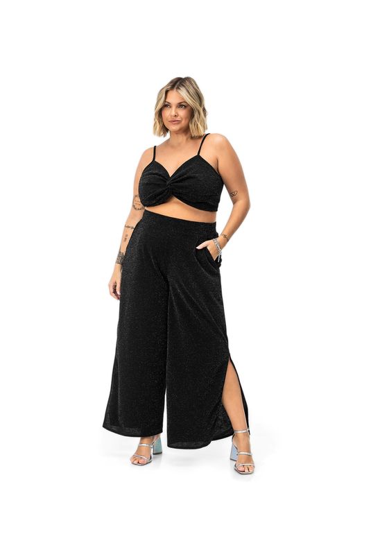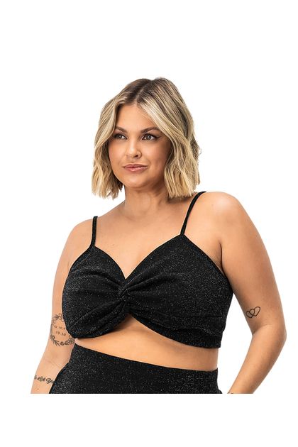 Blusa Cropped Feminina Plus Size Secret Glam Preto