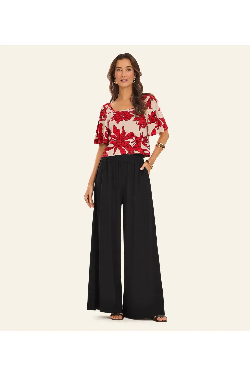 Blusa Cropped Feminina Rovitex, confeccionada em visco maquinetada de toque agradável. Traz base com estampa rotativa, decote quadrado com reforço em friso nas costas, além de mangas e barra com acabamento em bainha para caimento impecável. Conta ainda com etiqueta interna nas costas. Uma peça versátil e refinada, ideal para compor looks casuais com elegância e sofisticação.-