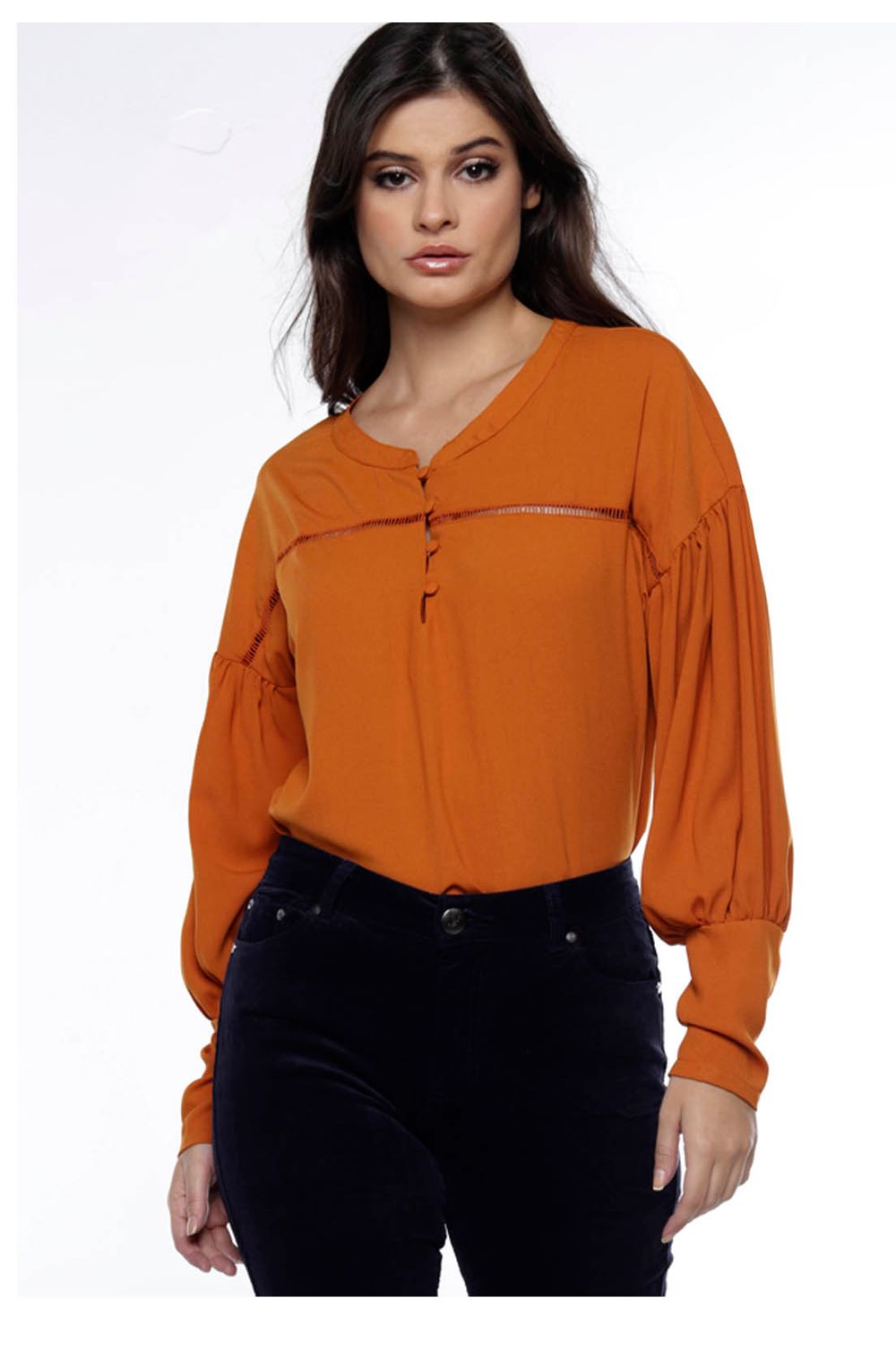 Blusa de Manga Longa Feminina Bufante Sob Terracota
