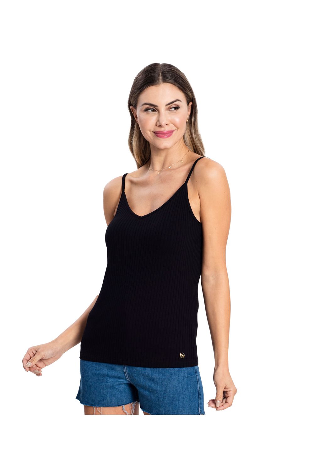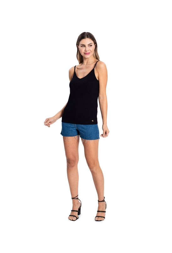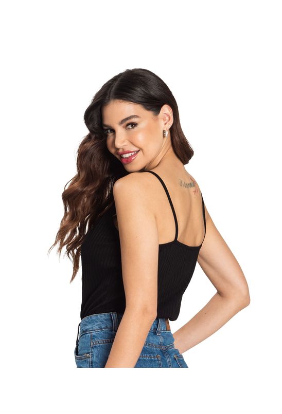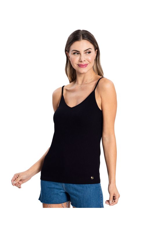 Blusa De Alça Feminina Ribana Canelada Rovitex Preto