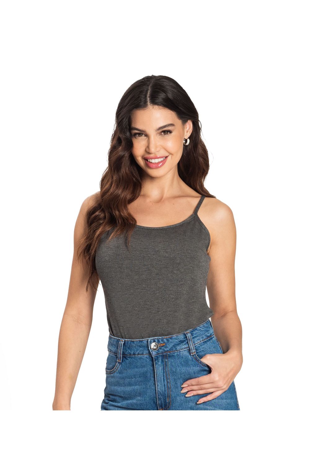 Blusa de Alça Feminina Viscotorcion Básica Rovitex Cinza