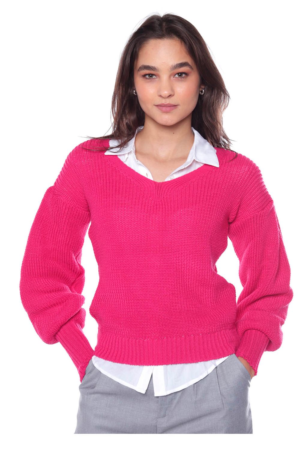 Blusa de Tricot Gola V Rosa Escuro Sob