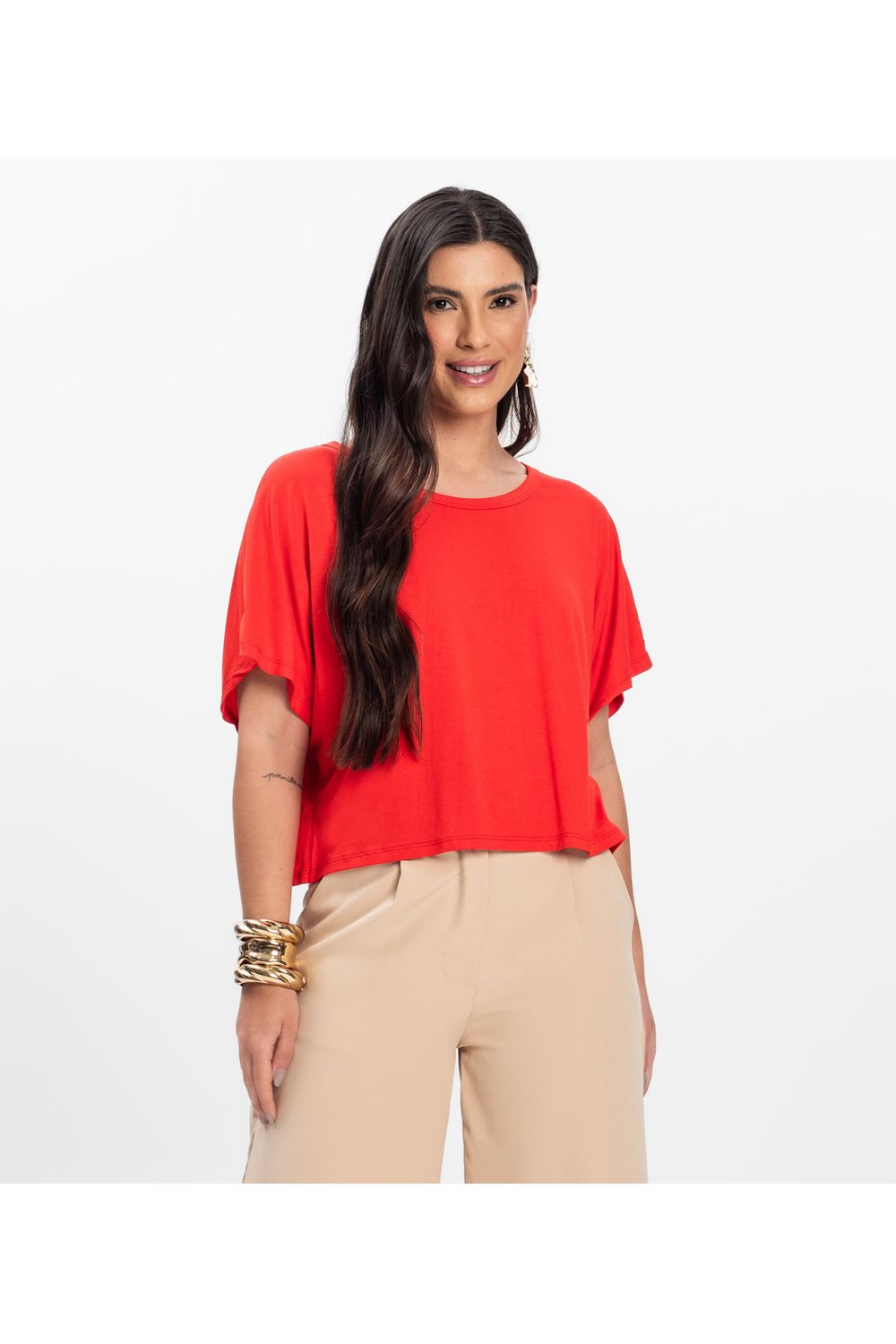 Blusa Feminina com Manga Morcego Rovitex, confeccionada em malha Visco Premiere, que proporciona um toque macio e ótimo caimento. Possui modelagem ampla com mangas estilo morcego, ideal para garantir conforto e estilo. O decote é redondo com acabamento em friso e as bainhas contam com costura reforçada, garantindo durabilidade. Uma peça leve e versátil, perfeita para compor looks modernos e confortáveis em diversas ocasiões.-