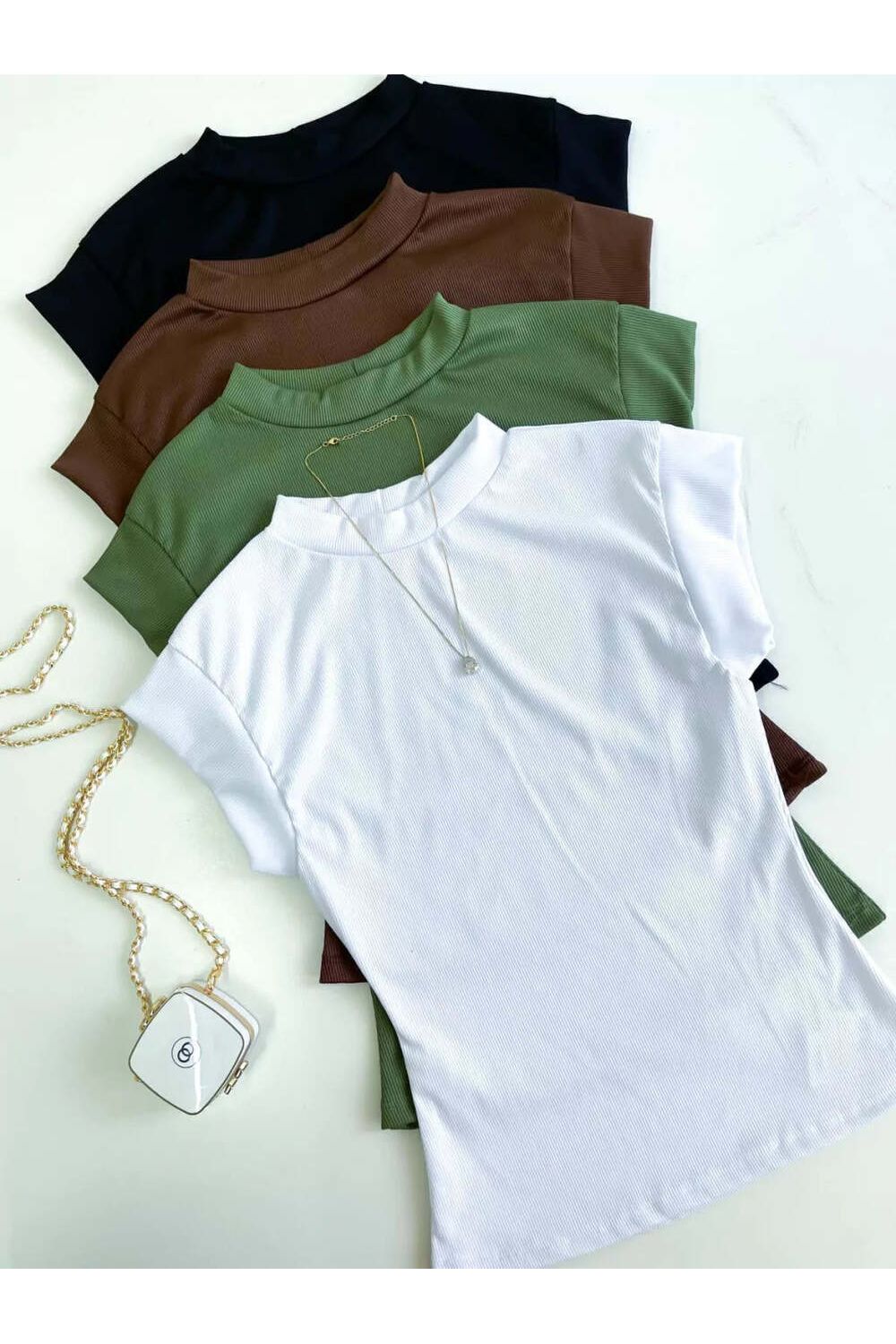 Blusa Feminina em Ribana Muscle Tee com Gola Tuane Ref. 978