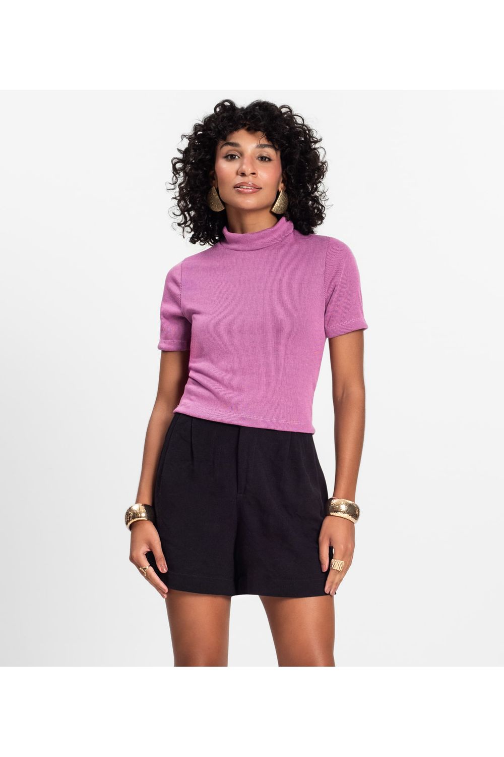 Blusa Feminina Infinita Cor, confeccionada em Ribana Duo de toque macio. Conta com gola alta dupla talhada, mangas curtas e caimento ajustado, com comprimento levemente acima do umbigo, unindo estilo e conforto com um visual moderno.-