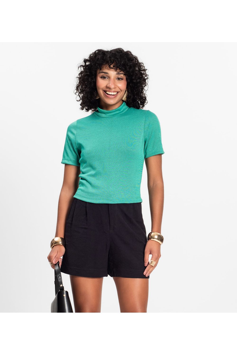 Blusa Feminina Infinita Cor, confeccionada em Ribana Duo de toque macio. Conta com gola alta dupla talhada, mangas curtas e caimento ajustado, com comprimento levemente acima do umbigo, unindo estilo e conforto com um visual moderno.-