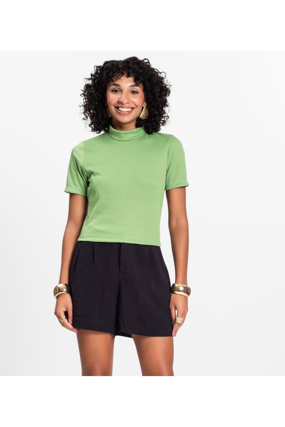 Blusa Feminina Infinita Cor, confeccionada em Ribana Duo de toque macio. Conta com gola alta dupla talhada, mangas curtas e caimento ajustado, com comprimento levemente acima do umbigo, unindo estilo e conforto com um visual moderno.-