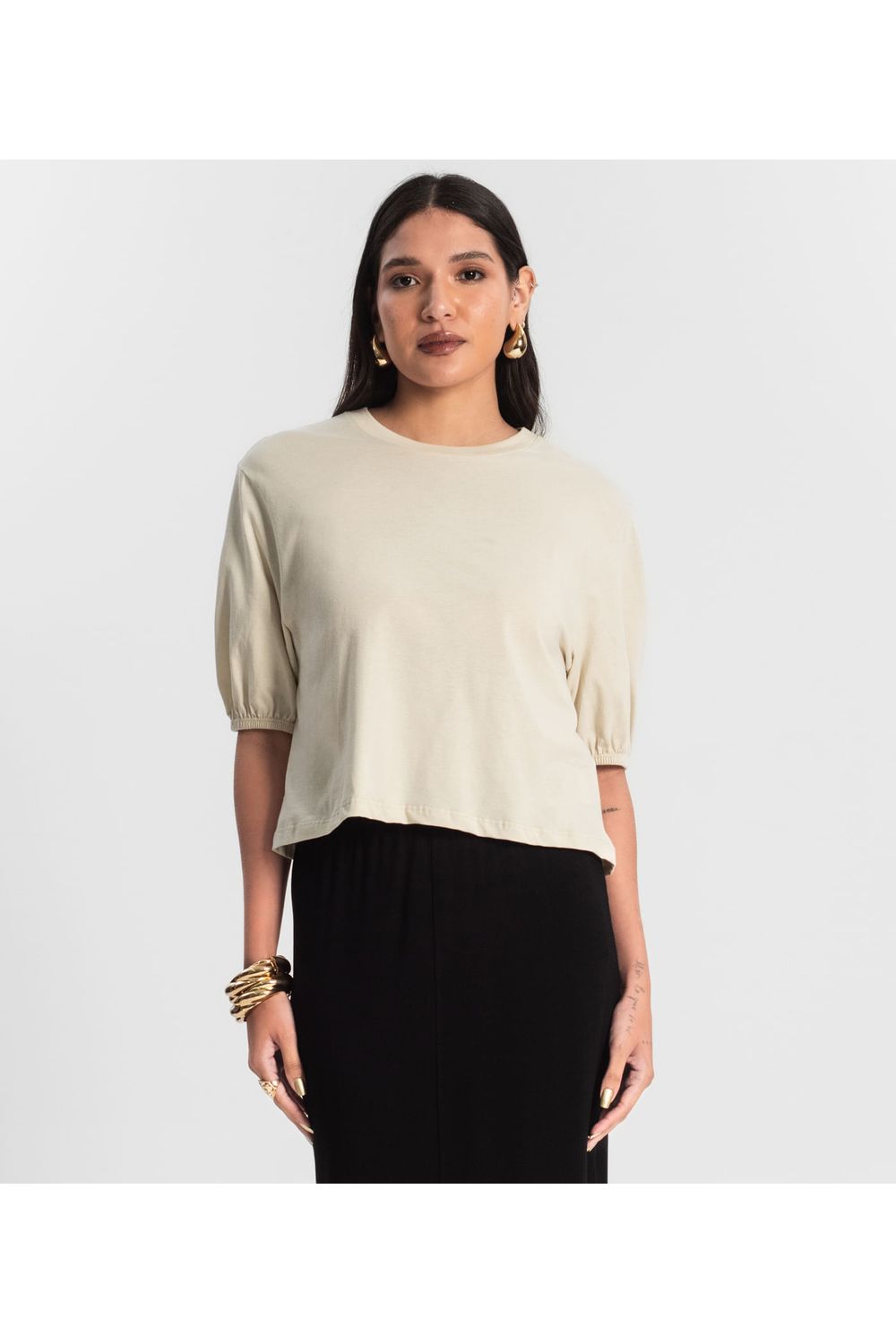 Blusa Feminina Manga Camponesa Rovitex Bege