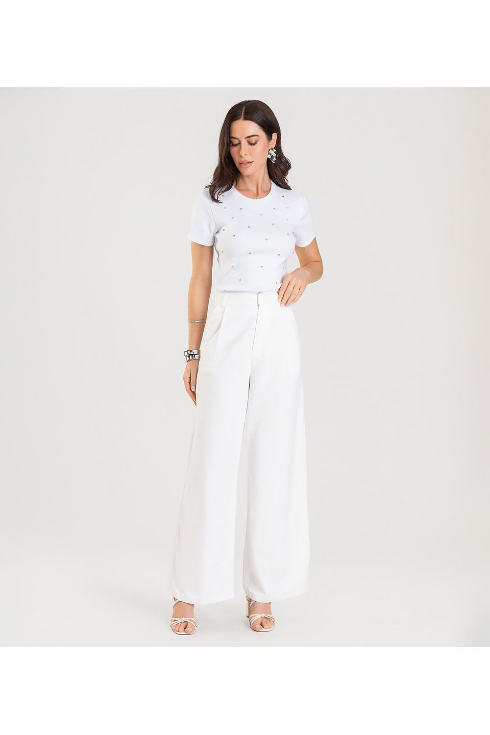Blusa Feminina Manga Curta Com Rebites Dianna Branco