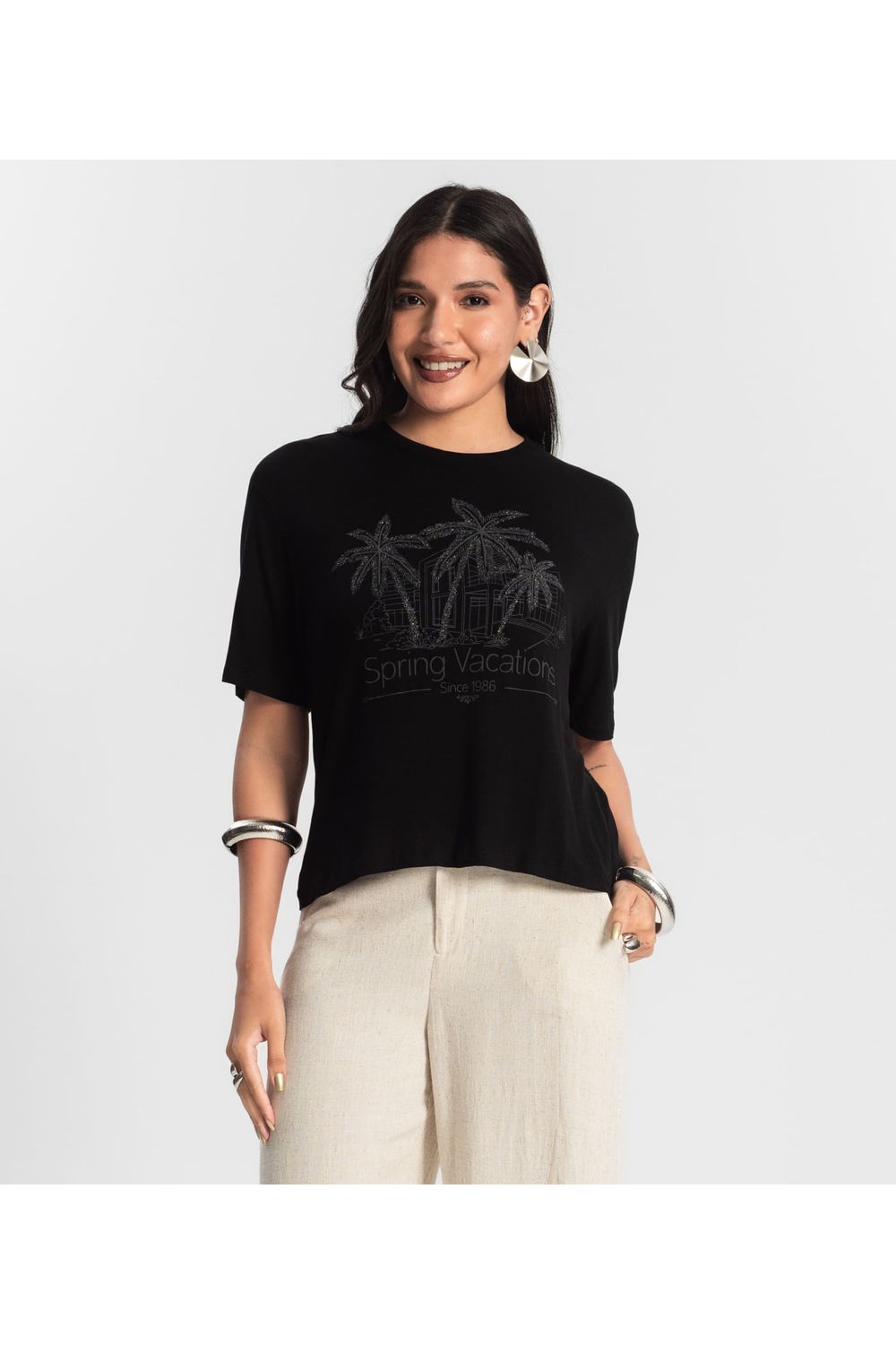 Blusa Feminina Over com Estampa e Glitter Rovitex Preto
