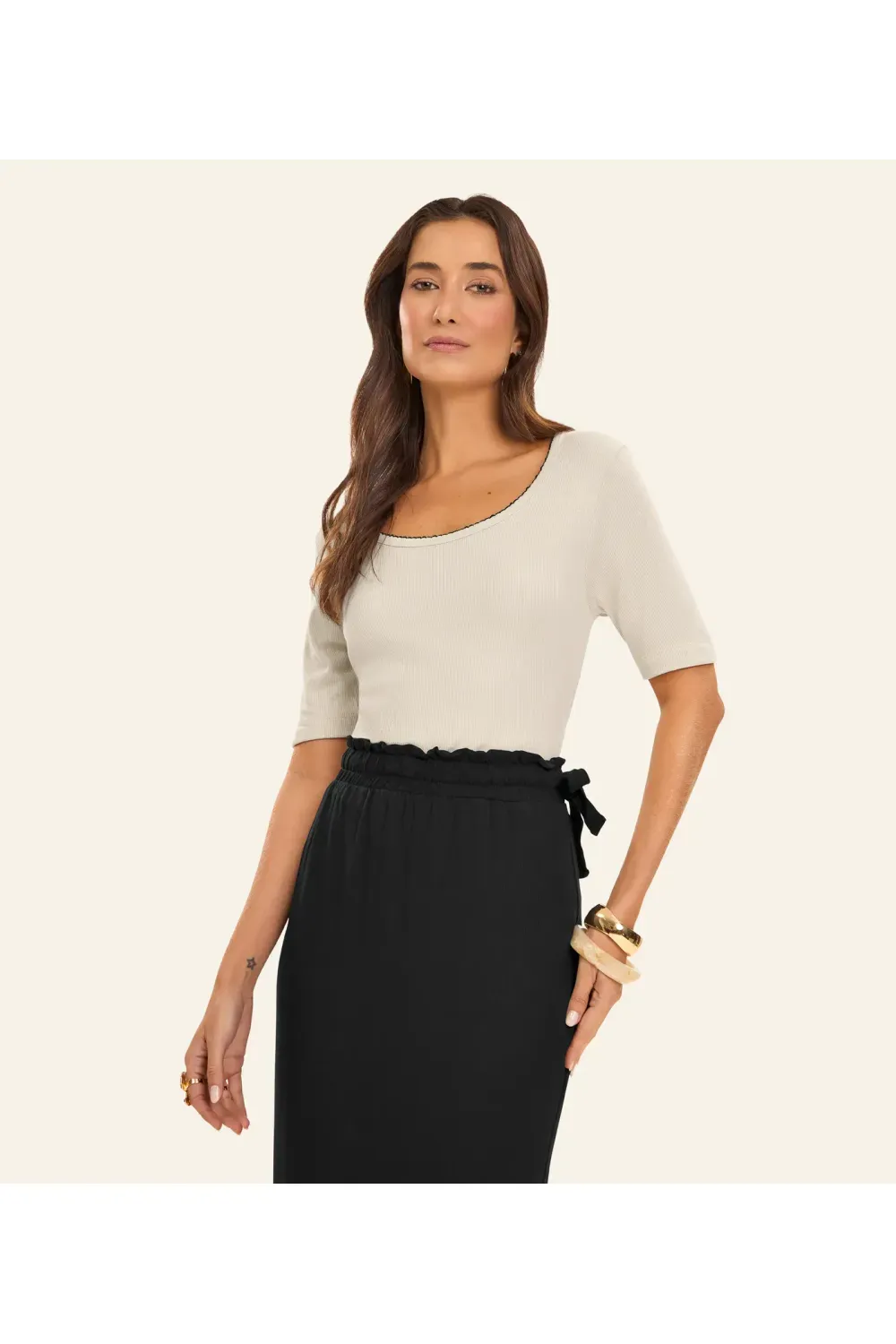 Blusa Feminina Ribana de Viscose Rovitex Bege