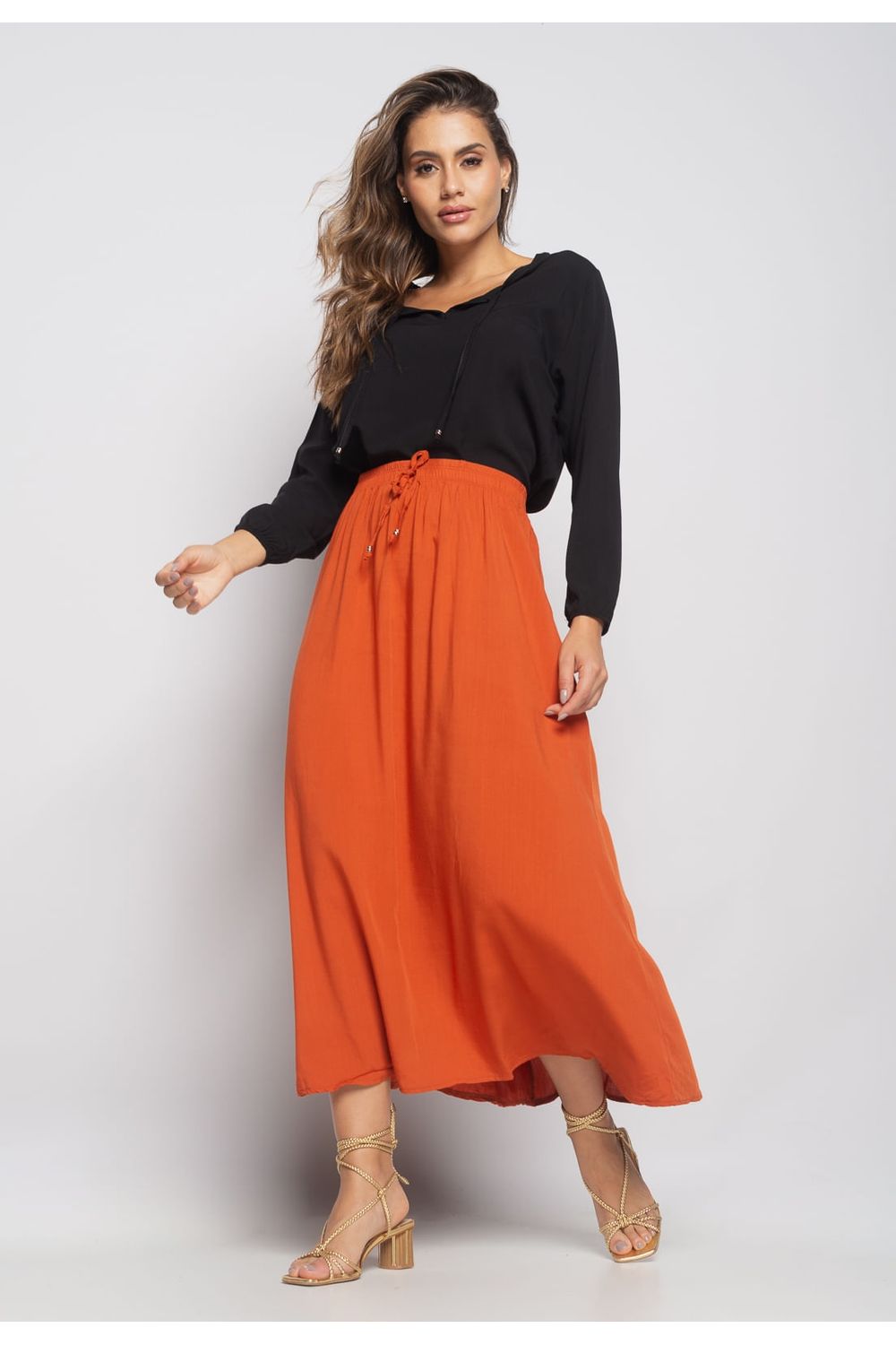Blusa Gola V Manga Longa Viscolinho Preto Salvatore