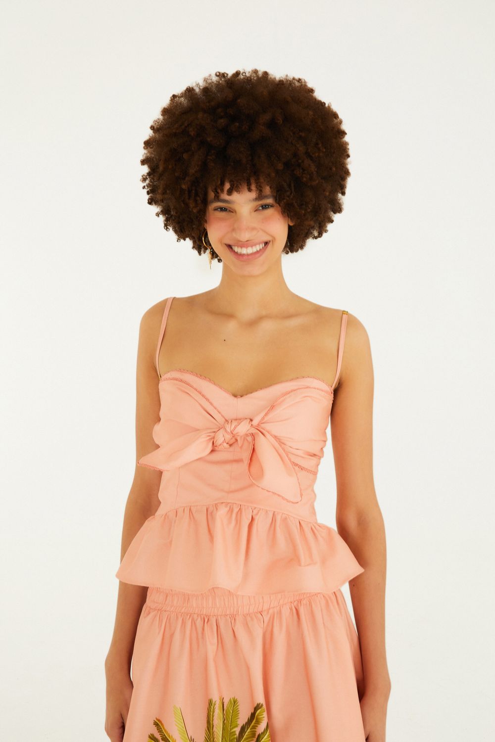 blusa jeri. encantadora com suas alças finas e detalhe franzido central que se transforma em nó, apresenta modelagem peplum suave que adiciona movimento. ideal para momentos casuais ou um encontro especial. versátil e autêntica, harmoniza com saias leves ou jeans. FARM RIO original - alto verão 26.-