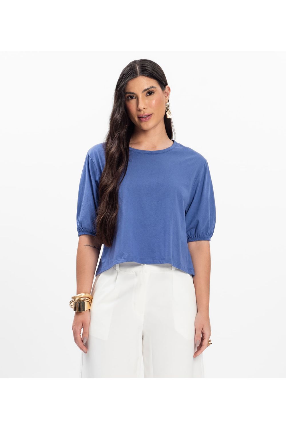 Blusa Manga Camponesa Feminina Rovitex Azul