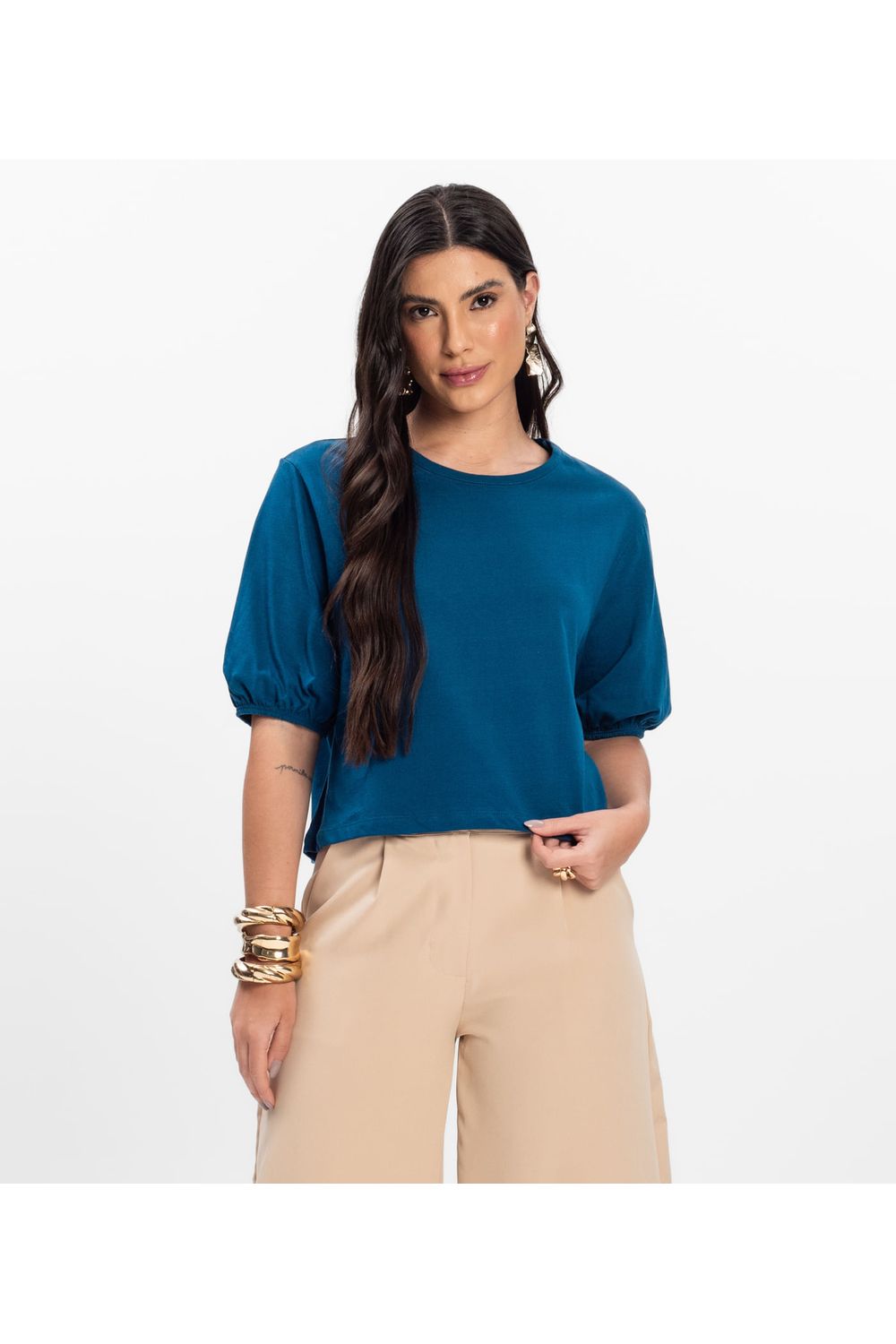 Blusa Manga Camponesa Feminina Rovitex Azul