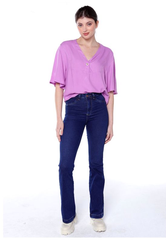 Detalhes: Blusa de viscose com mangas solta até o cotovelo. Gola em decote V duplo com um botão verdadeiro marmorizado. Recorte quadrado frontal.
