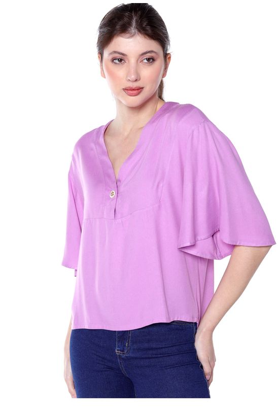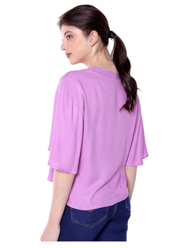 Blusa Manga Curta em Viscose Solta Sob Lilás