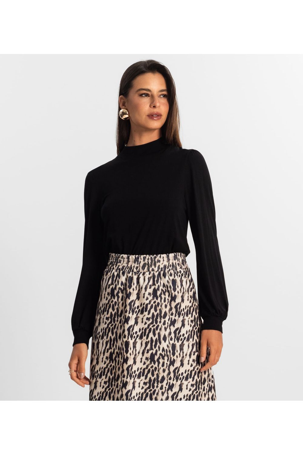 A Blusa Feminina Rovitex, confeccionada em Viscotorcion, combina sofisticação e conforto em um design moderno. Possui gola alta talhada em ribana, proporcionando um ajuste aconchegante e elegante. As mangas amplas com franzido localizado na altura dos ombros e punhos adicionam um toque de delicadeza e movimento à peça. Ideal para composições versáteis, essa blusa é perfeita para looks cheios de estilo e personalidade.-