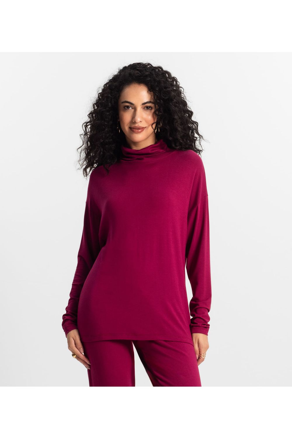 A Blusa Manga Longa Feminina Rovitex combina sofisticação e conforto em uma peça moderna e versátil. Confeccionada em Viscotorcion e Ribana de Viscose, proporciona um toque macio e um caimento leve. Seu design conta com gola talhada em ribana dupla dobrada, garantindo um ajuste elegante e confortável. A modelagem alongada traz praticidade ao look, enquanto a manga morcego com cava deslocada adiciona fluidez e um toque contemporâneo à peça. Ideal para compor looks casuais ou sofisticados!-