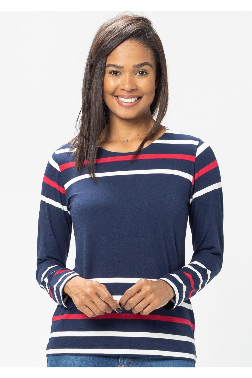 Blusa Manga Longa Pau a Pique Listrada Azul Marinho
