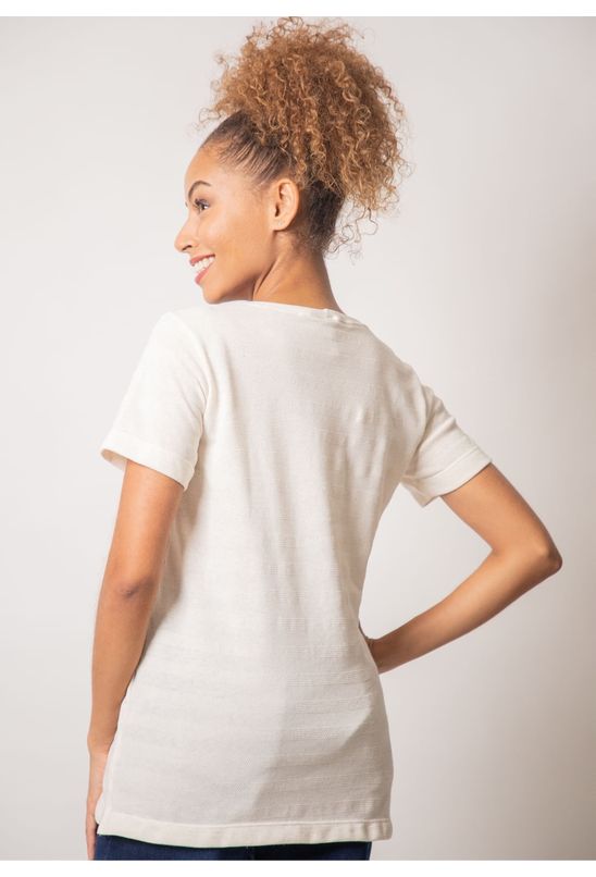Confeccionado em 50% Algodão, 43% Poliéster e 7% Linho.