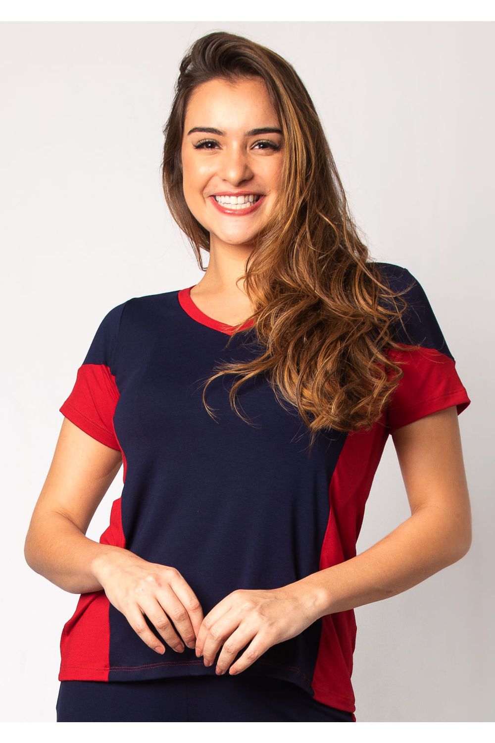 Blusa Pau a Pique Básica Marinho e Vermelho
