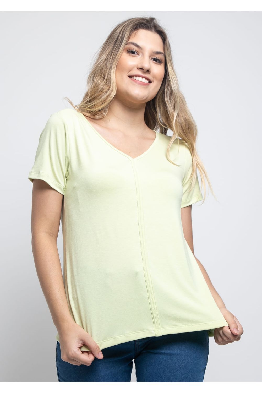 Blusa na cor Verde Lima com detalhe de recorte vertical frontal.