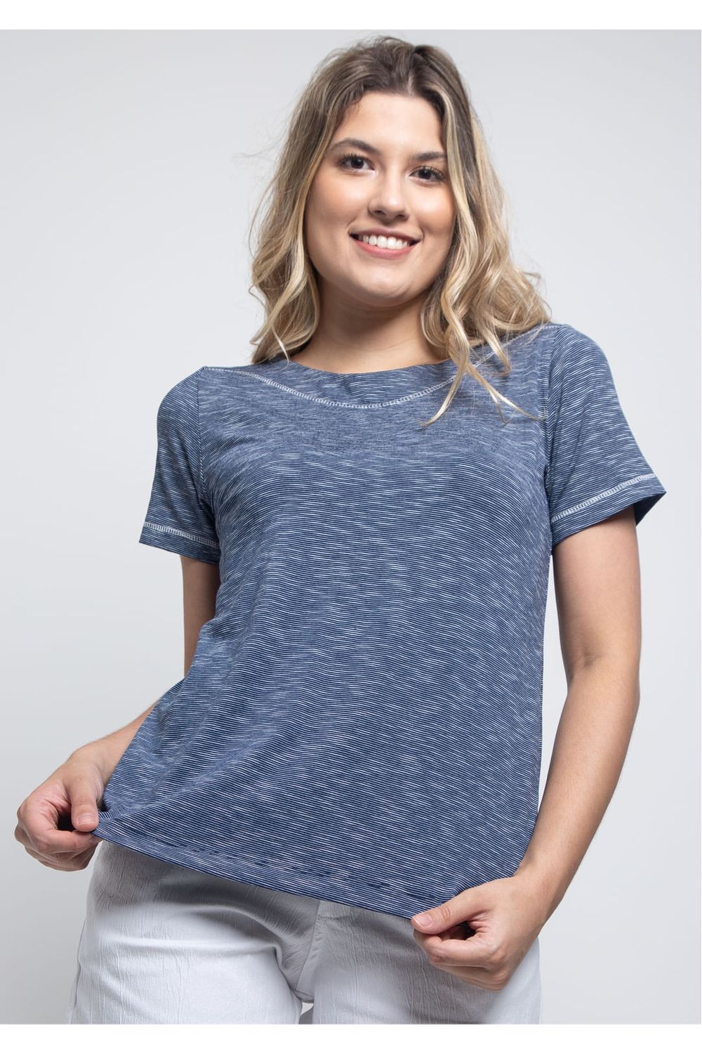 Blusa em malha flamê mescla, na cor Azul Marinho.
