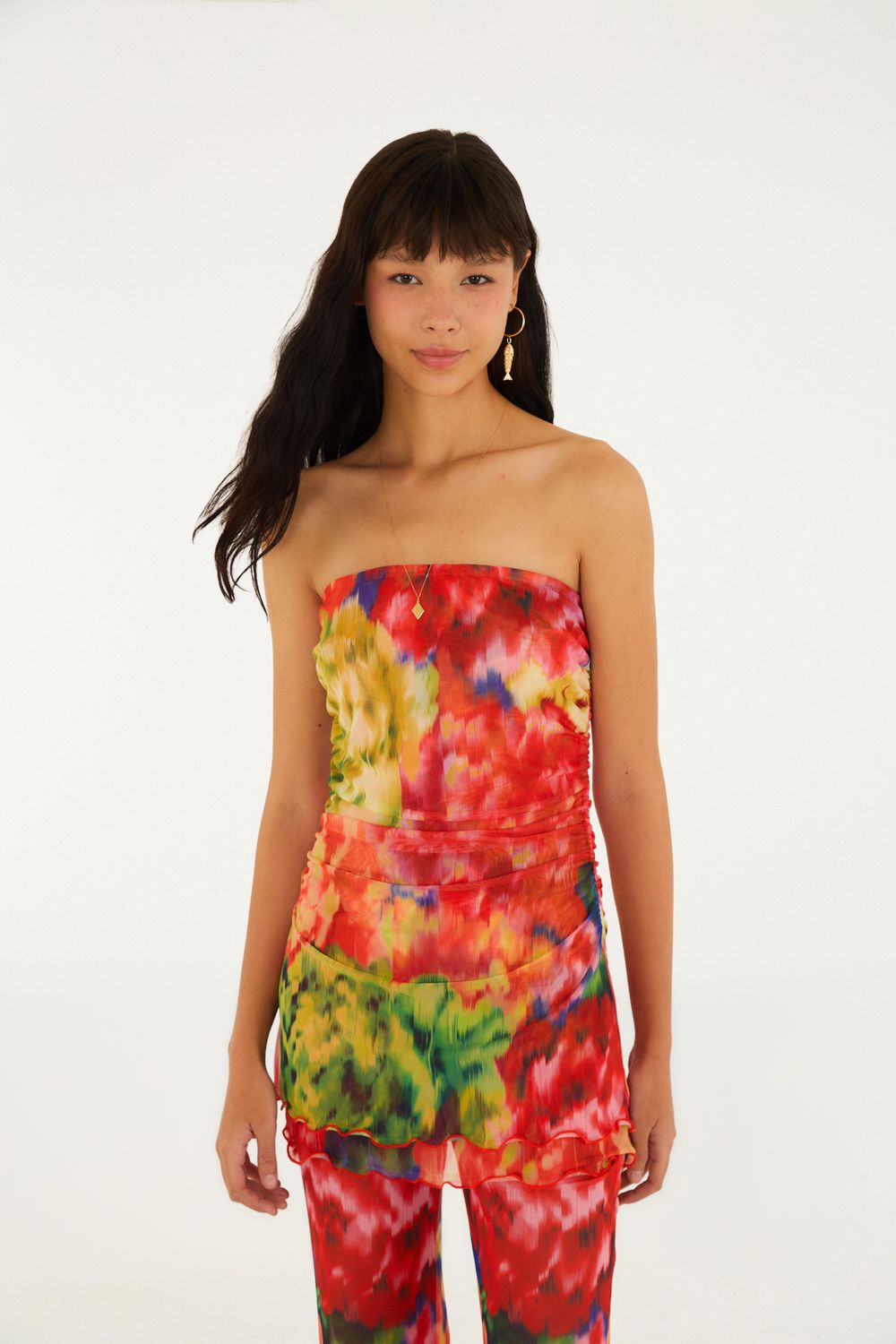 blusa sem alça tule estampada chita astral. possui design sem alças com ombros à mostra, ideal para valorizar produções casuais e charmosas. o corte fluido e o tecido leve garantem conforto e frescor. perfeita para dias ensolarados ou eventos descontraídos ao ar livre. FARM RIO original - alto verão 26.-