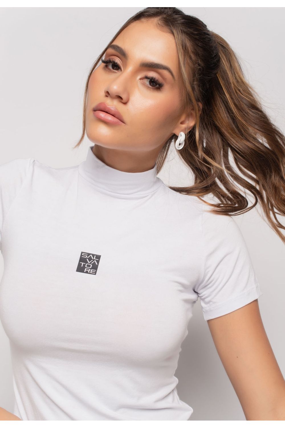 Blusa Sport Gola Alta Manga Curta Malha Branca Salvatore
