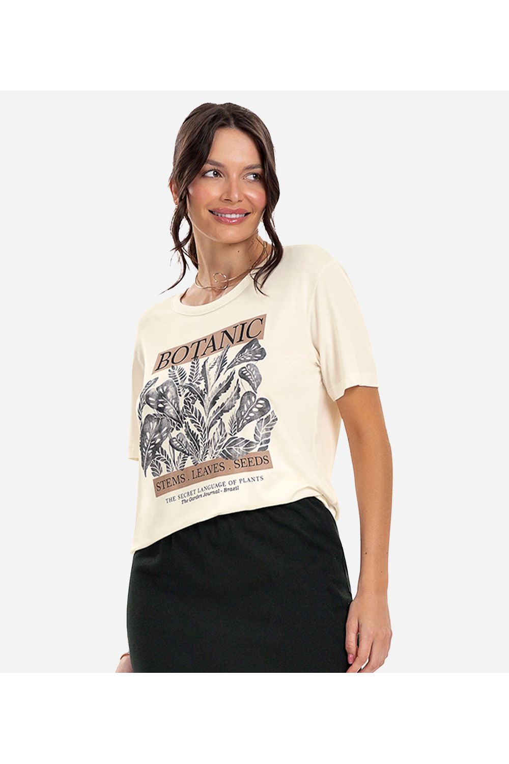 A Blusa T-Shirt Feminina Rovitex é a combinação perfeita de estilo e conforto para o dia a dia. Confeccionada em viscotorcion, oferece toque macio, leveza e ótimo caimento. A gola redonda traz um visual clássico e versátil, enquanto a estampa frontal "Botanic" adiciona um toque de frescor e modernidade à peça. O detalhe em glitter realça o design, proporcionando brilho sutil e charme extra. Ideal para looks casuais e despojados, combina com jeans, shorts ou saias em diversas ocasiões.-