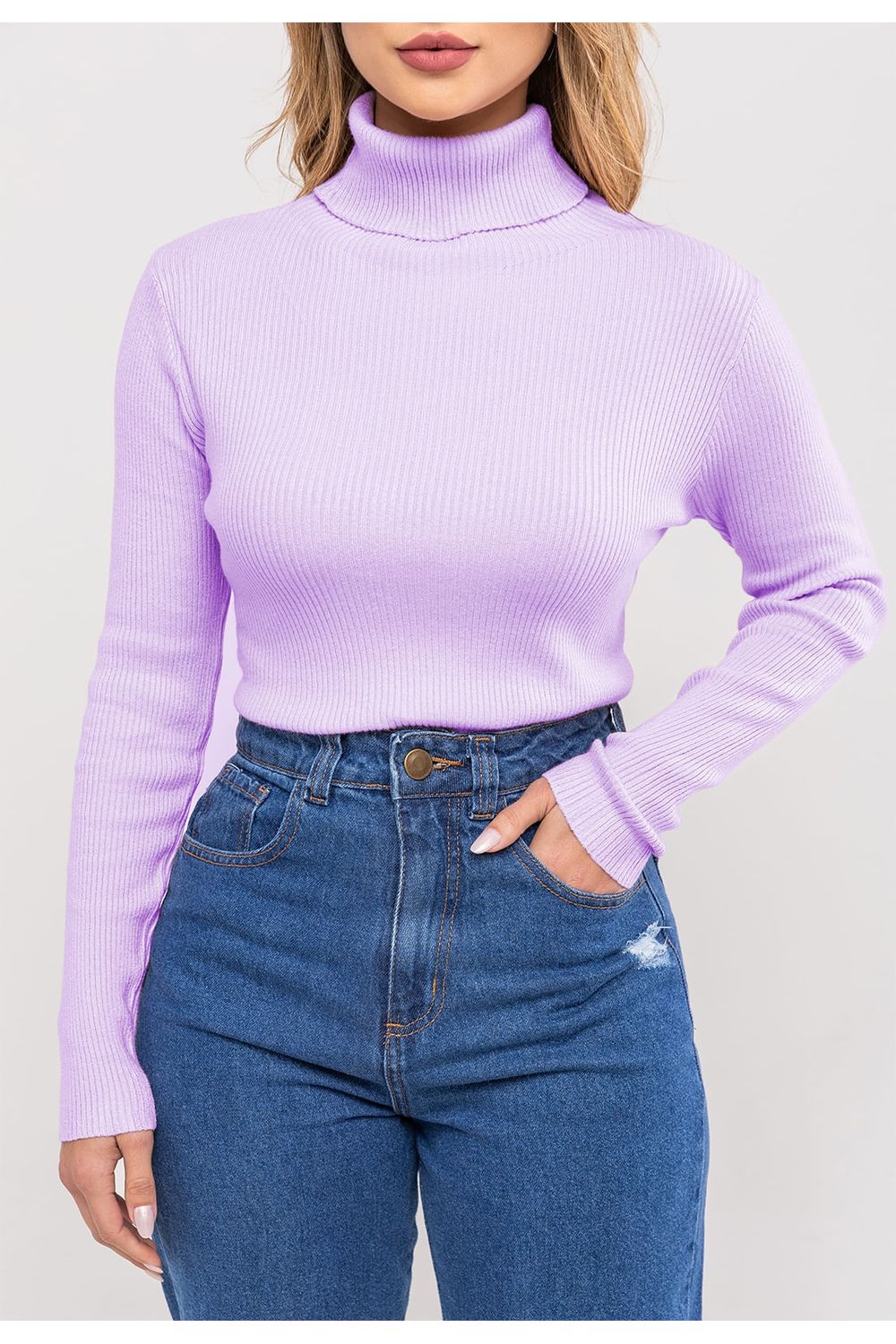 Blusa Tricot Modal Canelado Gola Rolê Lilás Salvatore - Tamanho U