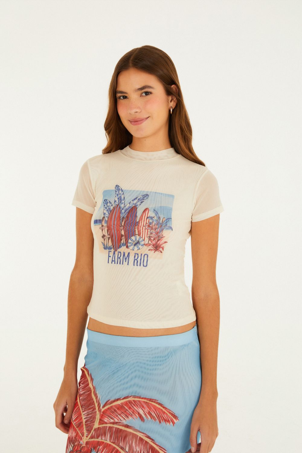 blusa tule estampada diário de verão traz leveza com seu tecido translúcido e toque casual. as mangas curtas e o caimento solto proporcionam conforto, enquanto a estampa exclusiva agrega charme e originalidade. ideal para combinar com diferentes looks, transitando do dia a dia ao happy hour com estilo. FARM RIO original - alto verão 26.-