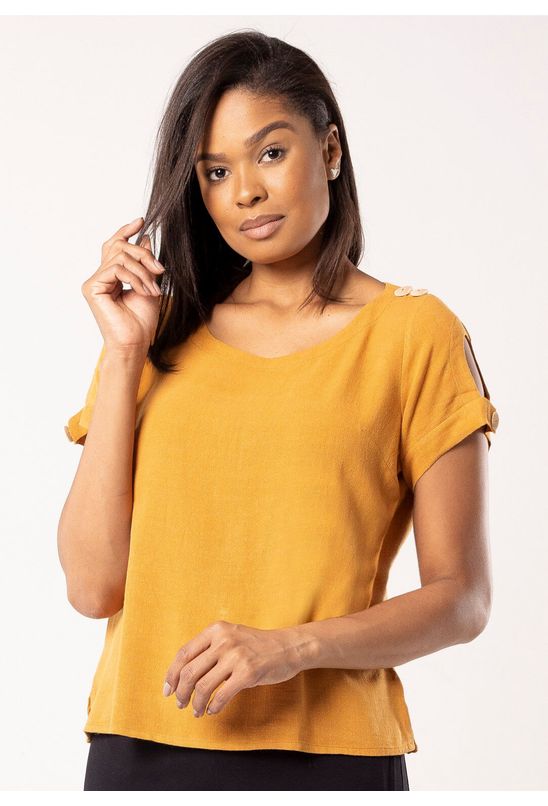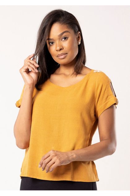 Blusa Viscolinho Básica Mostarda | Pau a Pique