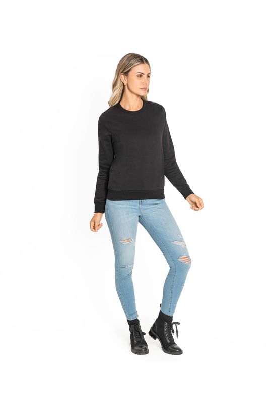 Blusão Feminino Básico de Moletom Rovitex Preto