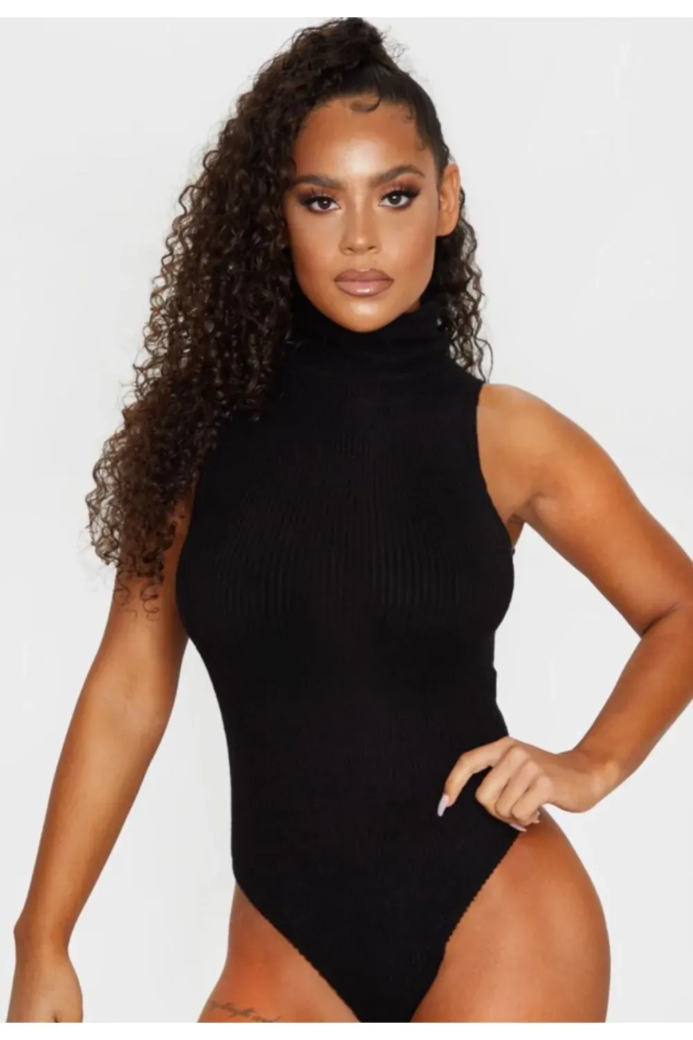 Body canelado gola alta sem mangas